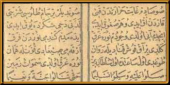 bir cam (kadeh) dolusu şerbeti Kardan ak (beyaz) idi ve hem soğuk idi * Lezzeti dahi şekerde yok idi İçdim anı (onu) oldu vucudum nura ğark (nurla kaplandı) * Edemedim kendimi nurdan fark * DOĞDU O(L) SAATTE O(L) SULTAN-I DİN (Dinin Sultanı - HZ.MUHAMMMED-SAV) * Nura Ğark oldu (nurla kaplandı) semavat-u Zemin (Gökler ve yer) * Sallu aleyhi ve sellimu teslima (Ona salat ve selam ediniz) * Hatta Tenalu Cenneten ve naima (Cennete -ve nimete kavuşuncaya kadar) |
