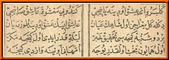 Kendüyi (kendini) maşuka (sevilene) aşu(ı)k sanıcı Dinle gel miracın o(l) şahın ayan (belli) * Aşık isen aşk oduna (ateşine) durma yan Bir düşenbih (pazartesi) gi(e)cesi tahkik (gerçek) haber * Leyle-i kadr (kadir gecesi) idi o(l) gi(e)ce meger O(l) hümayun (mubarek) bahtı o(l) kadri (kıymeti) yüce * Ümmühani(1) evine vardı gi(e)ce (1) Hz.Ali'nin kızkardeşi, Amca kızı |